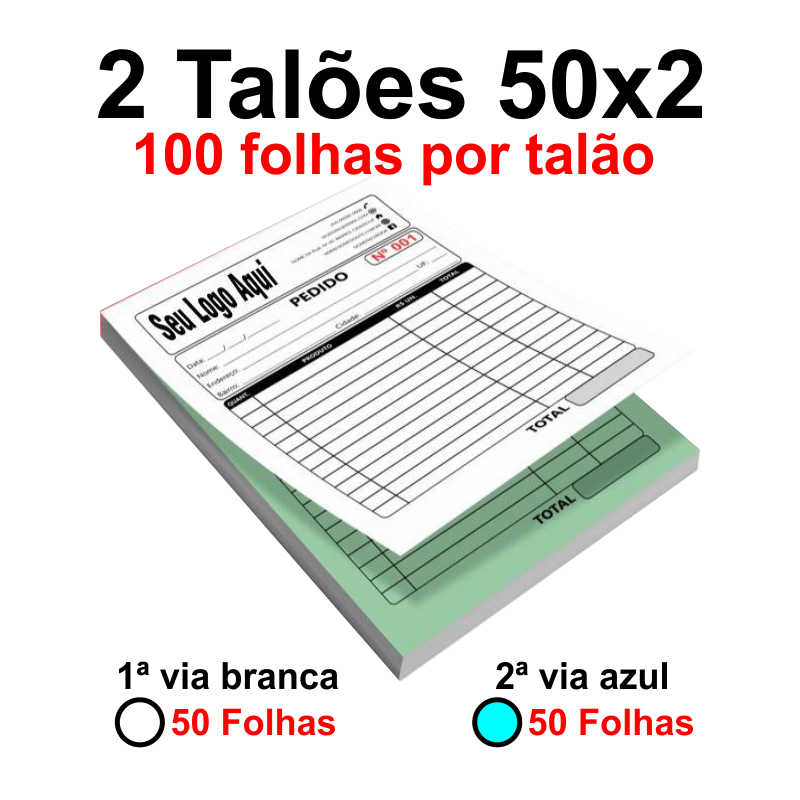 A quantidade final deste produto é referente ao número de folhas e não de blocos – Por exemplo: 100 unidades = 1 Bloco 50×2 vias.